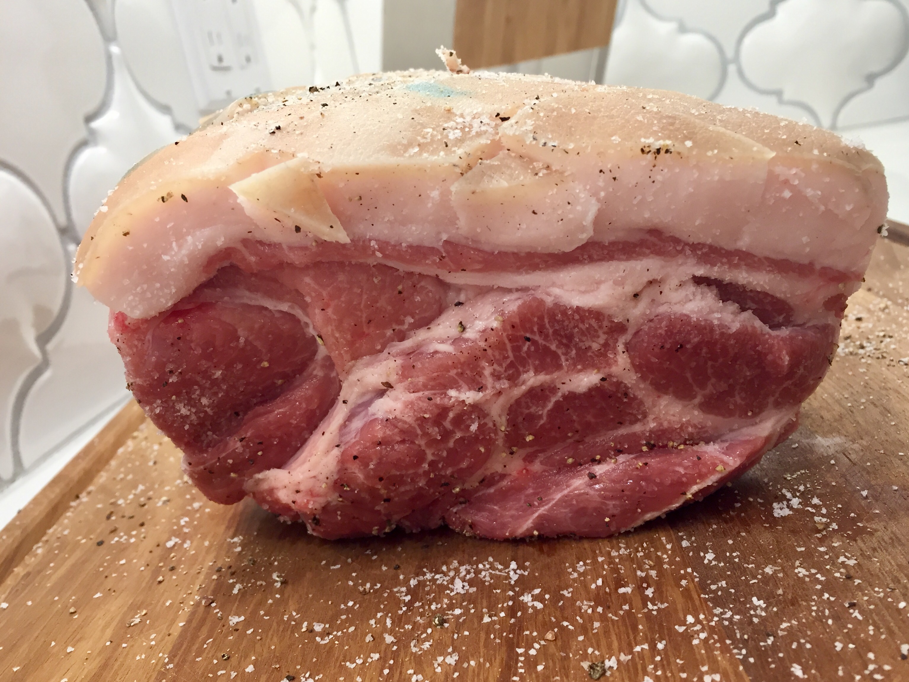 The key to this recipe is to order pork shoulder or pork butt (surprise! they’re the same thing!) from your local meat shop exactly this way: