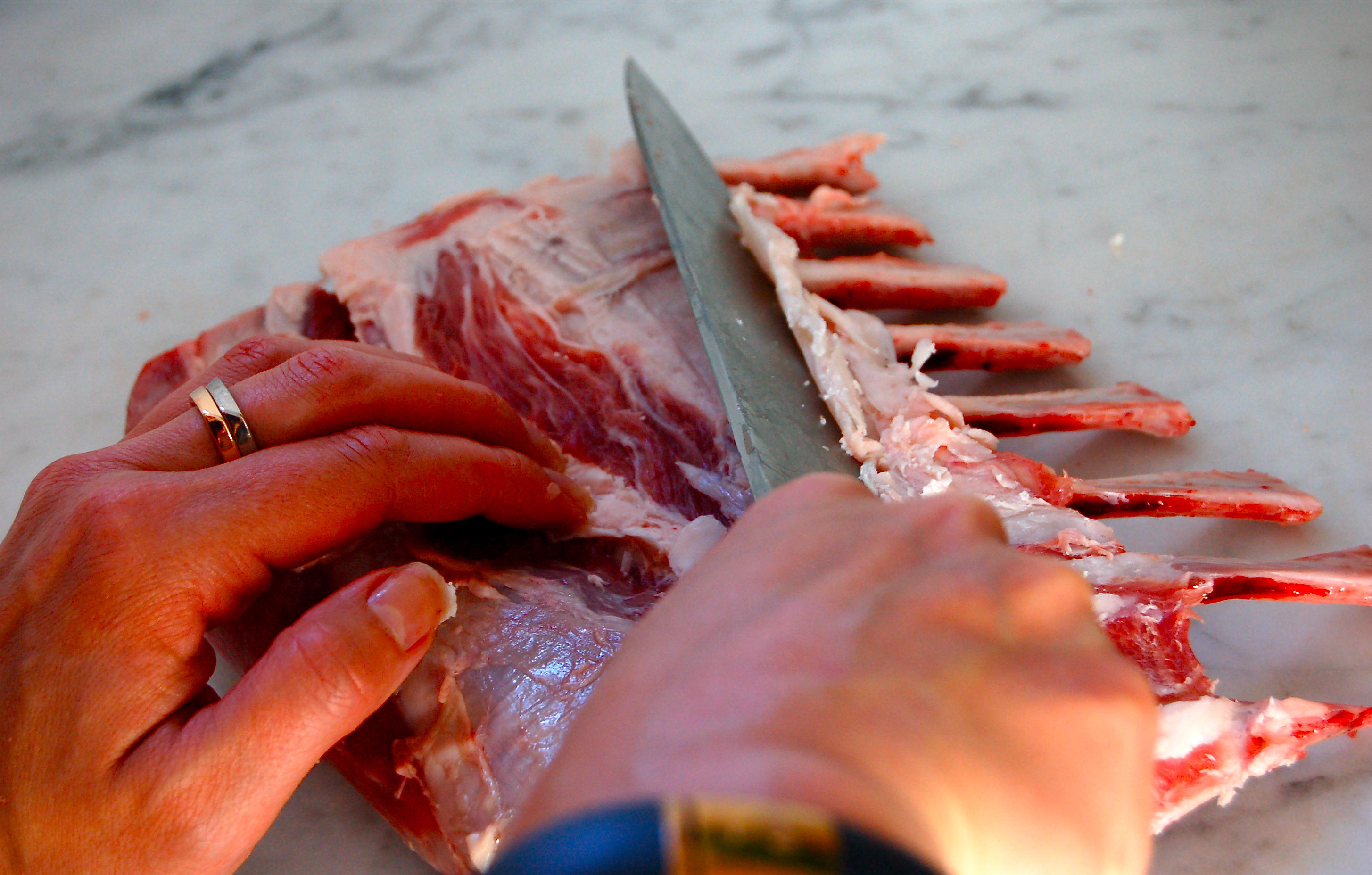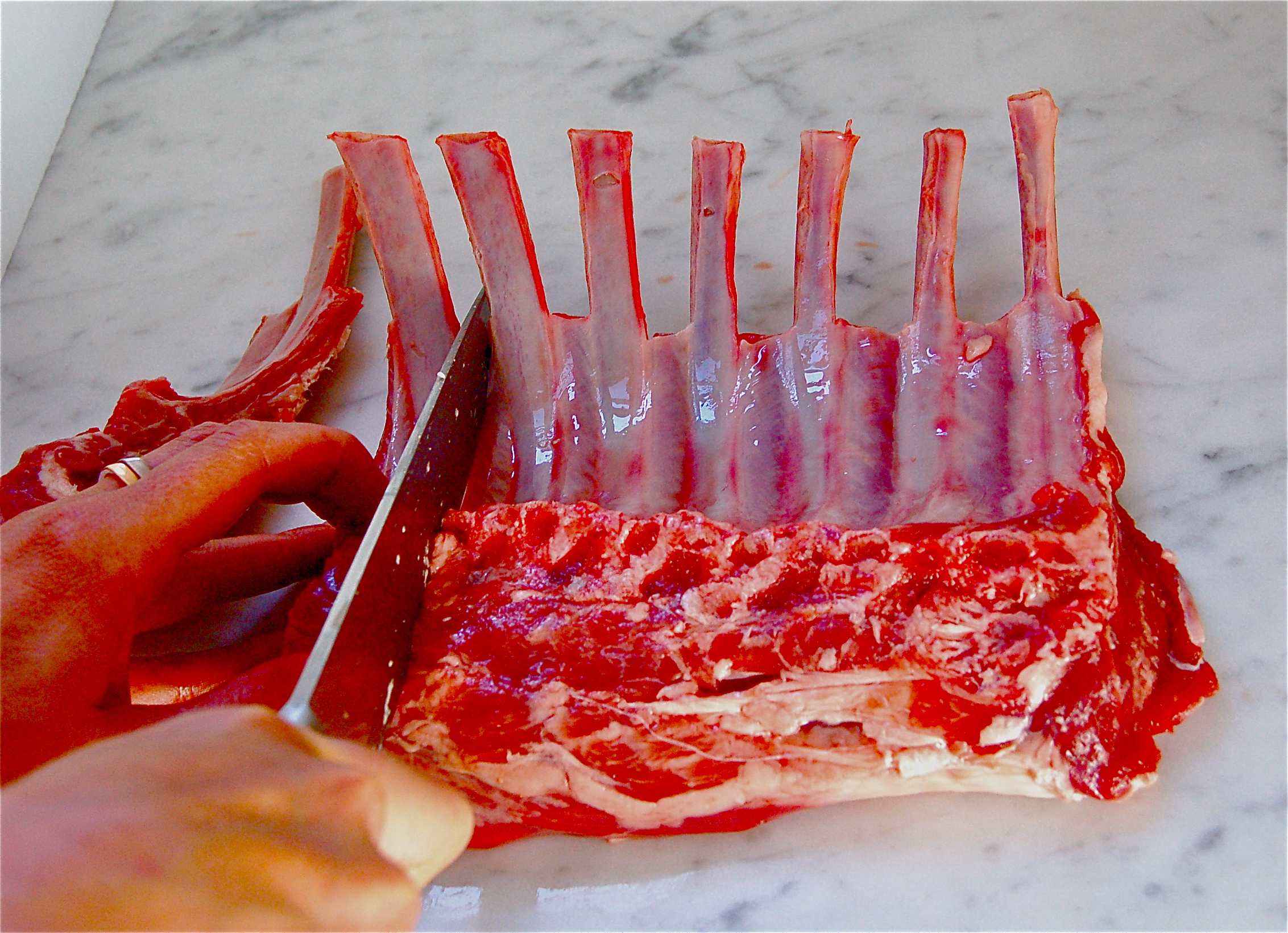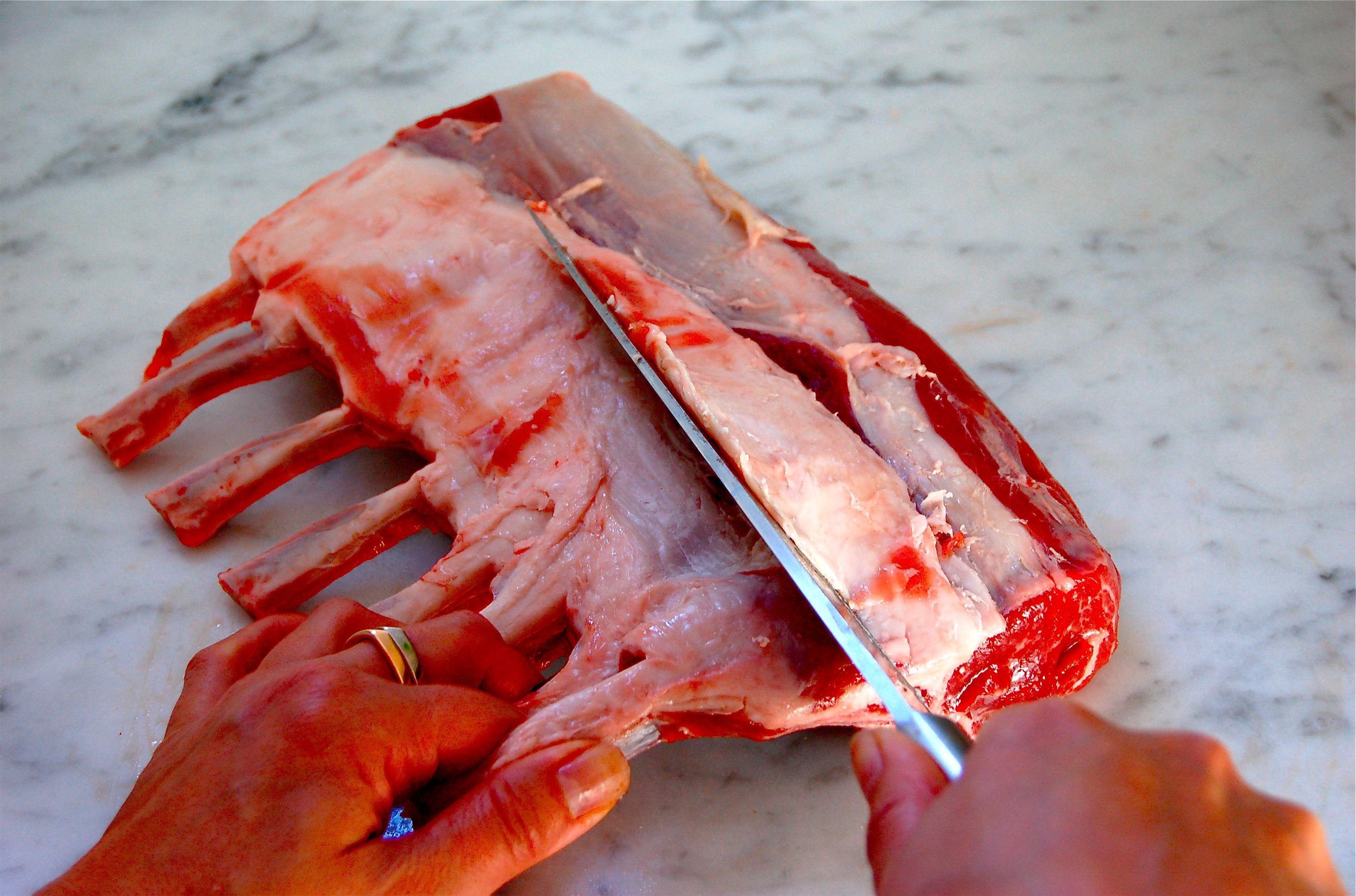 Tools: Sharp chef knife, cutting board & a rack of lamb