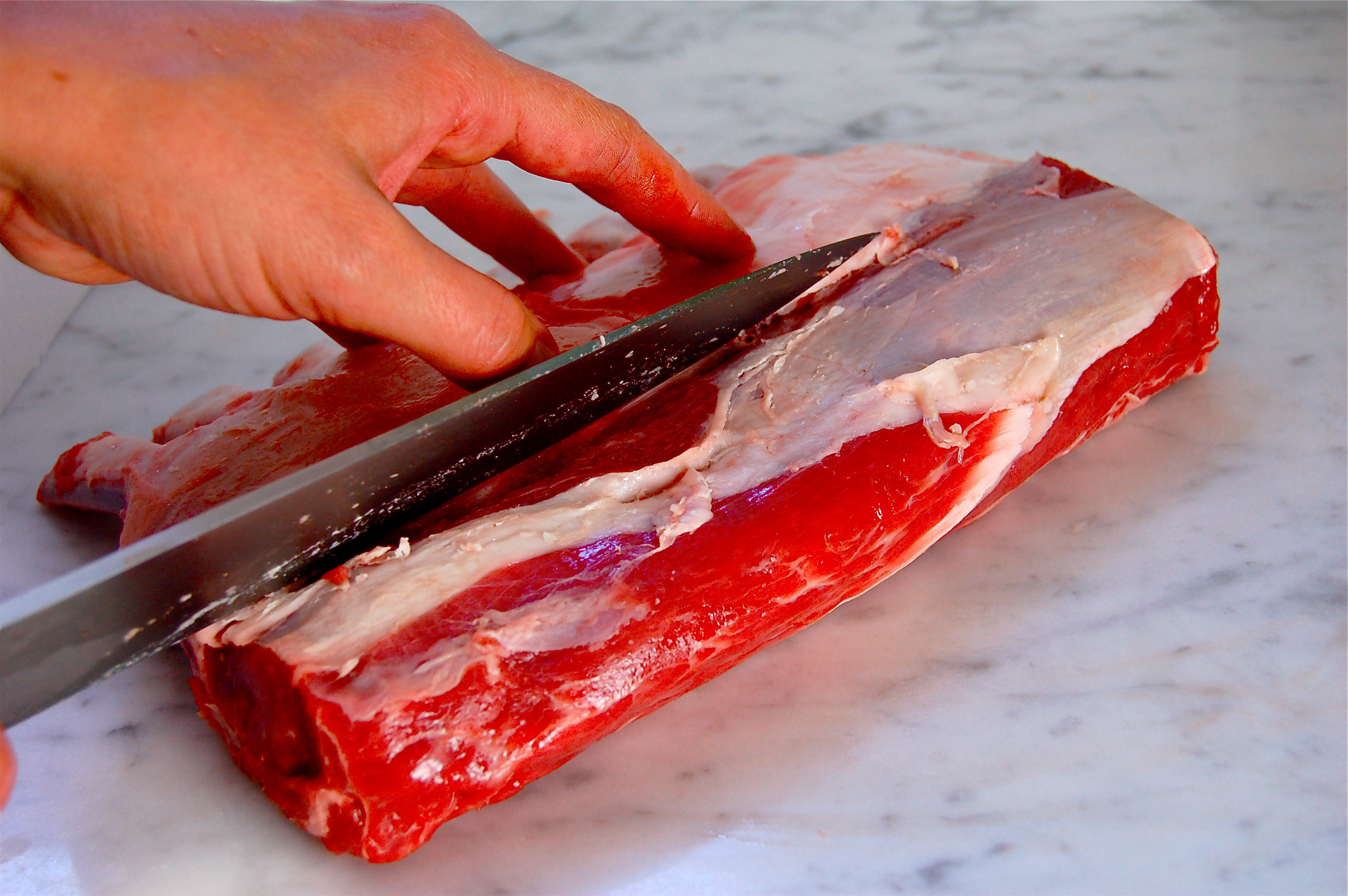 The slice of fat, which you don’t want to serve to your friends and you don’t want to go to your hips, will pull out like this: